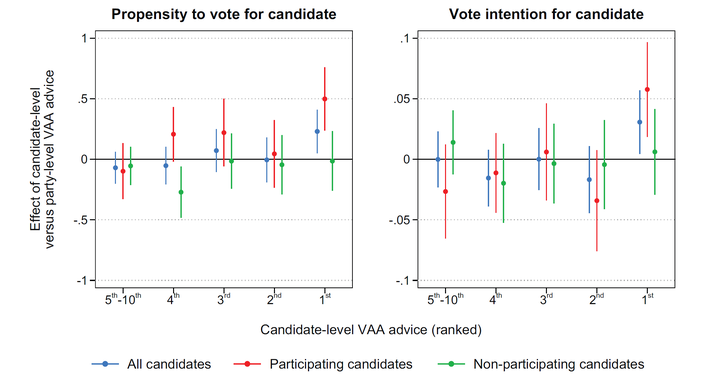 Marginal effects of candidate-level versus party-level VAA advice on candidate preferences